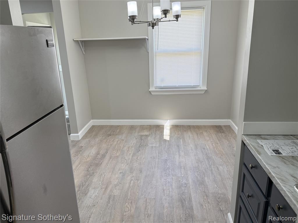 Welcome to 11375 Grandmont, nicely updated bungalow with modern day amenities: a living room with a natural fireplace; and useful dining room! The kitchen has been updated featuring a glass tile backsplash, range, refrigerator, and microwave oven! The brand-new bath is gorgeous with new ceramic tile floor, new ceramic tile tub surround, new tub, new commode, new sink/vanity, new plumbing and fixtures. Much of this home was torn down to the studs and redone...new drywall, new laminate flooring, new lighting-both fixtures, and recessed, new paint. The huge upper bedroom has new carpet and a large double closet...the perfect getaway from the rest of the house! The basement is wide open, providing over 700 square feet of storage or build out opportunity. There is a new garage door; circuit breakers; vinyl windows; glass block windows with vents; PEX plumbing; and steel entry doors...enjoy this move in ready home. This is your opportunity to enjoy the Grandale neighborhood! This home is biking distance to O'Shea Playground, Doan Playground and Stoepel Park...a fabulous home!" 24 Hour Notice to Show. |