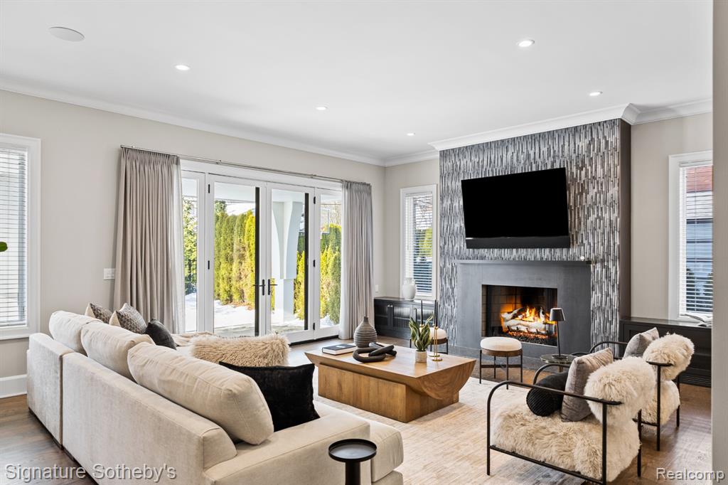 Nestled in Birmingham’s prestigious Quarton Lake Estates, this 4,445 sq. ft. residence was completed in 2023 by esteemed luxury builder Brandywine Construction. Featuring 5 bedrooms, 5.1 baths, and the convenience of a private in-home elevator, it seamlessly combines timeless architectural design with modern functionality. The exterior is defined by natural stone and clean lines, enhanced by professional landscaping that creates a striking first impression. Inside, sunlight pours through Marvin windows, framing every room with natural light. The living area is anchored by a striking fireplace wall and opens seamlessly to the outdoor terrace—perfect for effortless entertaining. At the center of the home, a gourmet chef’s kitchen features custom cabinetry, an oversized island, and a premium Thermador appliance package. A richly detailed study with a stately fireplace blends elegance with practicality, while Control 4 Home Automation allows you to manage lighting, audio, security, and climate with ease. The primary suite showcases vaulted ceilings, dual closets, and a spa bath with heated floors, twin vanities and a freestanding tub, creating a true sanctuary. Additional en suite bedrooms provide comfort and privacy for family and guests, while a convenient large second-floor laundry adds daily ease. The finished lower level elevates the lifestyle experience with a Dolby surround-sound theater, temperature-controlled wine room, stylish wet bar with a waterfall stone counter, and a guest suite that doubles as a fitness room. High-end audio and video equipment throughout the home ensures a refined living and entertainment experience at every turn. Outdoors, a covered front porch offers unobstructed views of the river, extending the living space with both beauty and tranquility. The home is further enhanced with high-end luxury finishes throughout, a full-house generator for peace of mind, and an attached two-car garage. |